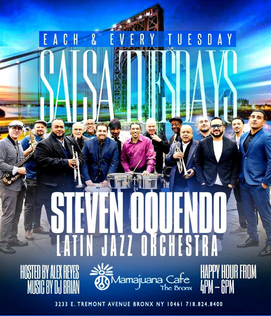 Steven Oqeundo Latin Jazz Orquestra Date Dec 02 2025 Time 8:00 pm Location Mamajuana Cafe 3233 E Tremont Ave, The Bronx, NY Website http://www.mamajuanacafebronx.com/ Share this event