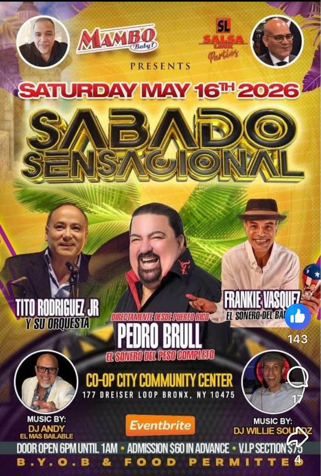 Tito Rodriguez Jr Date May 16 2026 Time 11:00 pm Location Co-Op City 177 Dreiser Loop, The Bronx, NY 10475 Share this event